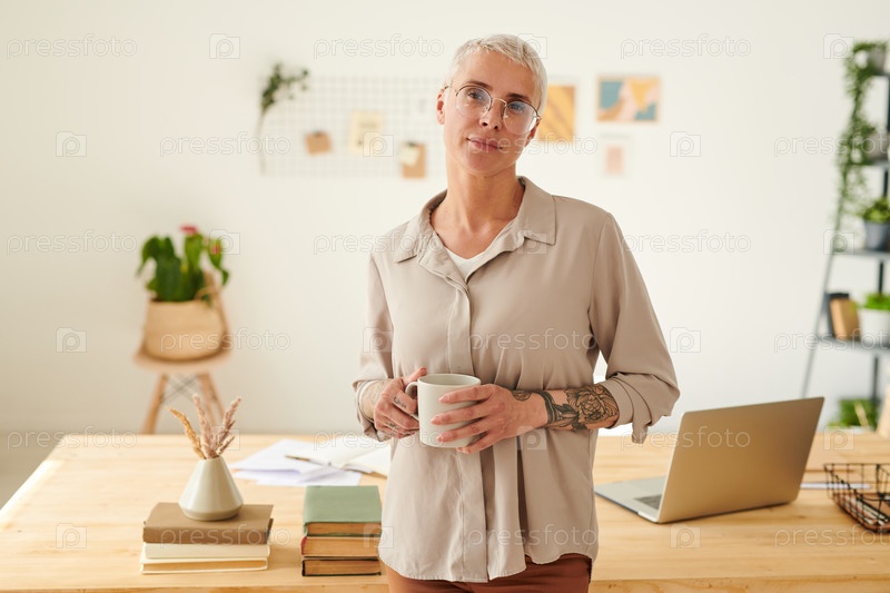 Хипстер-леди с кружкой в офисе