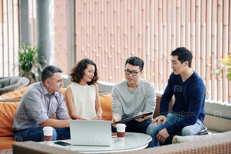 Предприниматель показывает отчет коллегам