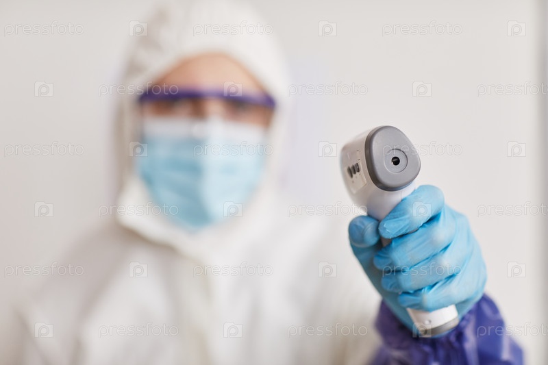 Медицинский работник держит инфракрасный термометр