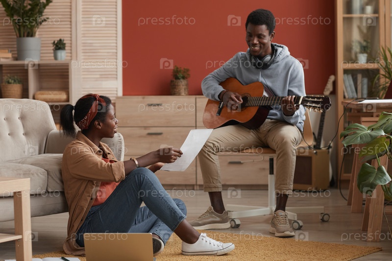 Афроамериканская пара пишет музыку дома