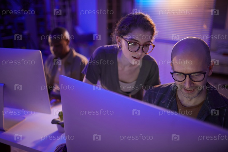 Коллеги работают вместе вечером
