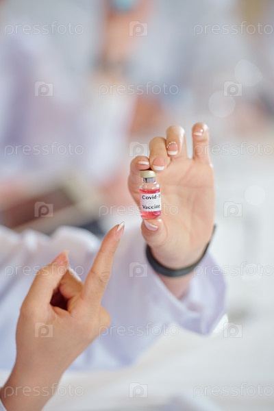 Учёная-женщина показывает вакцины