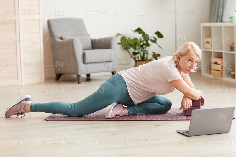 Женщина занимается спортом онлайн