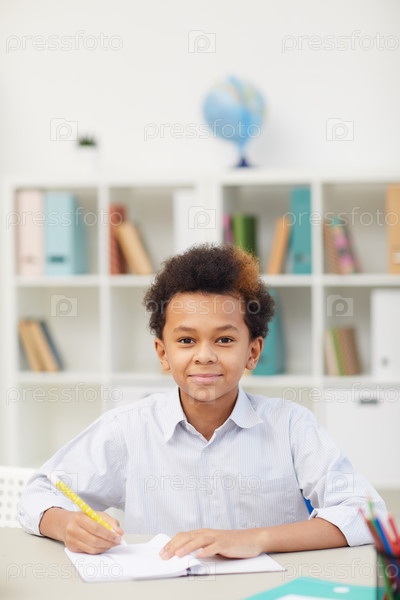 Африканский школьник, сидящий в классе