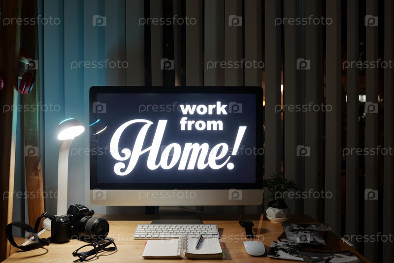 Светящийся компьютерный монитор в домашнем офисе