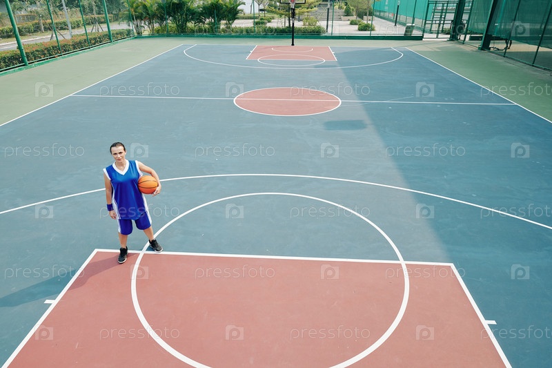Женщина, играющая в баскетбол одна