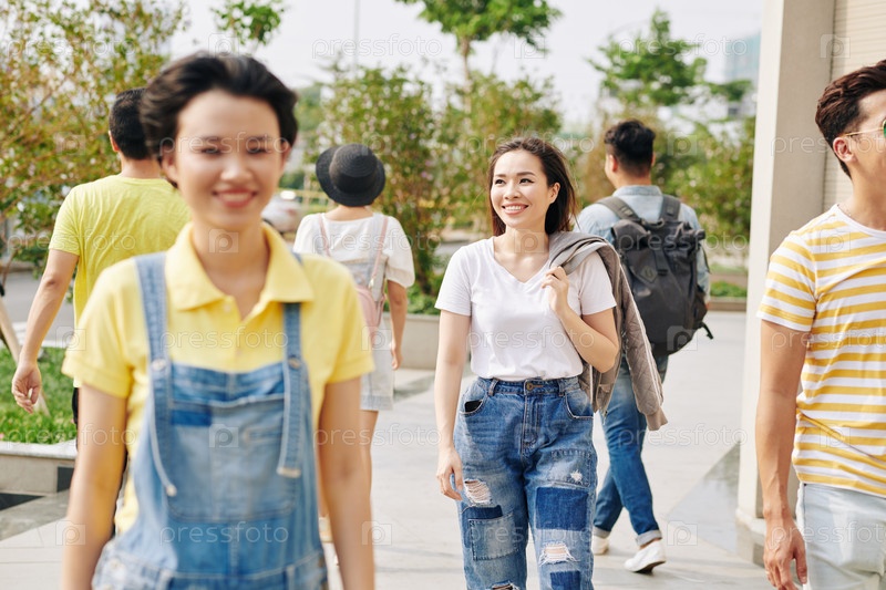 Молодая азиатская женщина, гуляющая на улице