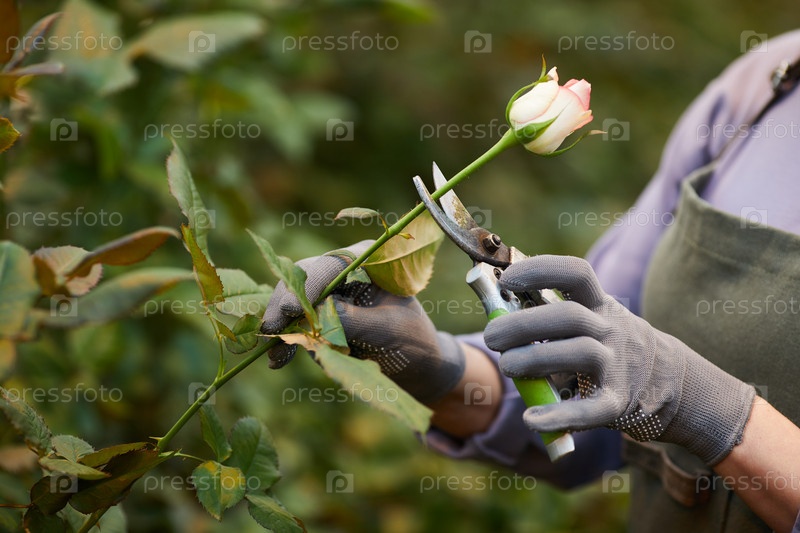 Женщина, режущая розы