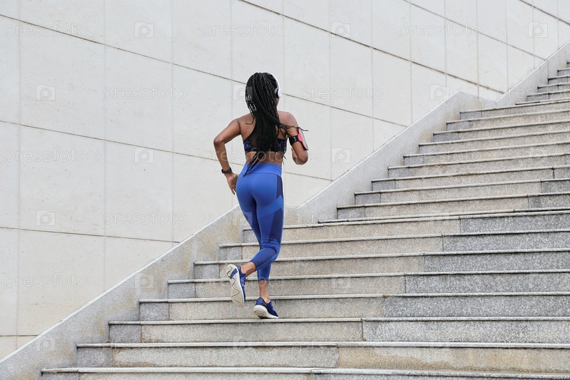 Спортсменка, бегущая по лестнице
