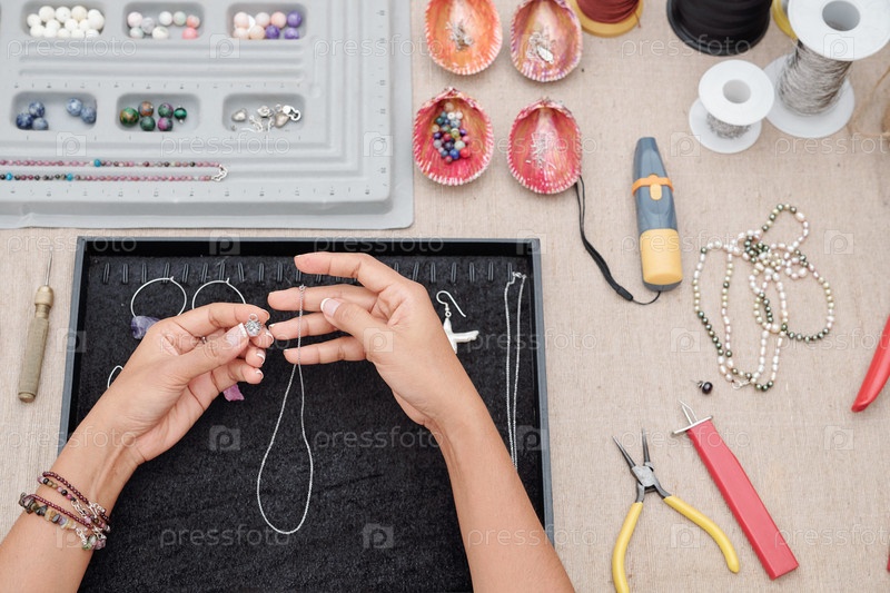 Женщина делает ожерелье