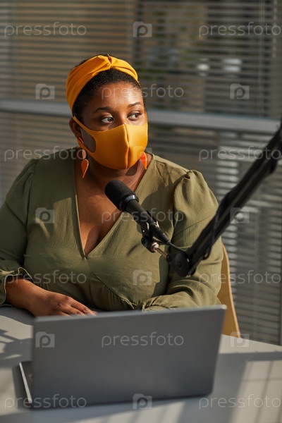 Женщина-интервьюер, работающая на радио