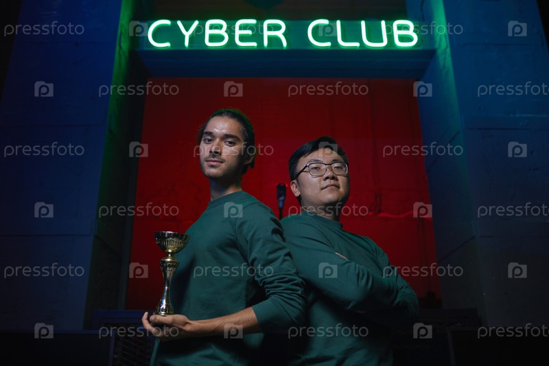 Геймеры с чашей в компьютерном клубе