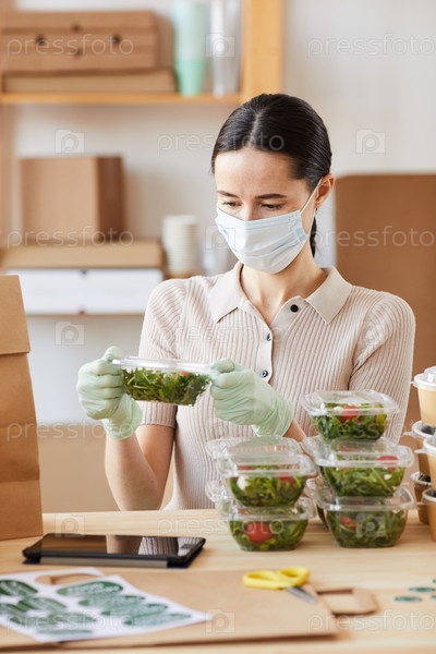 Женщина, упаковывающая органическое питание