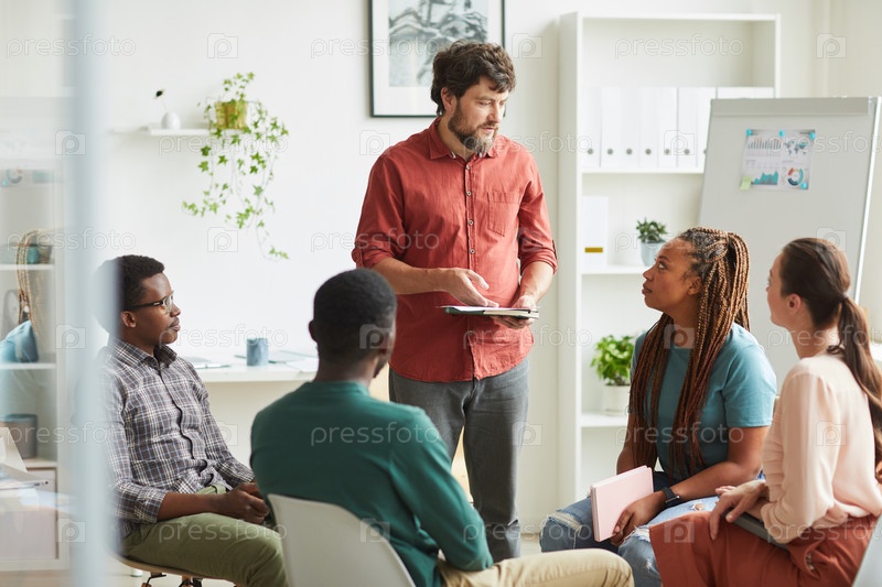 Бородатый менеджер, ведущий встречу