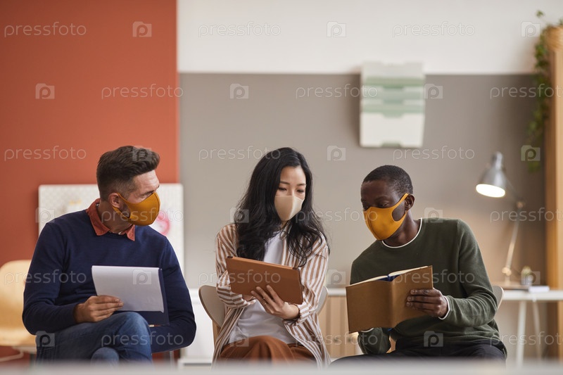 Коллеги, носящие маски на встрече