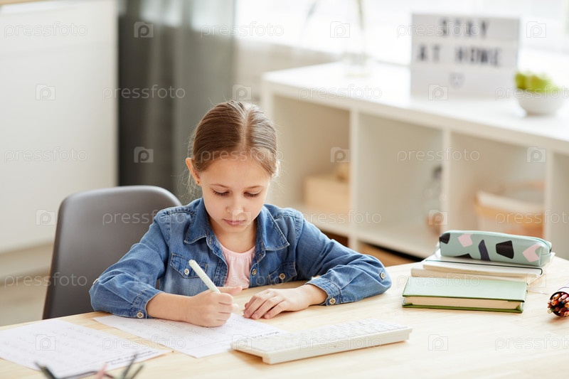 Милая девочка учится дома