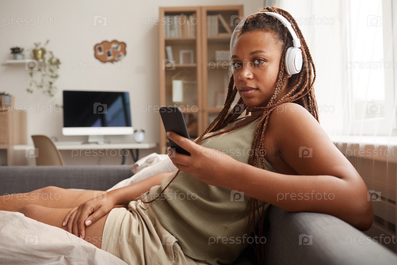 Женщина слушает музыку дома