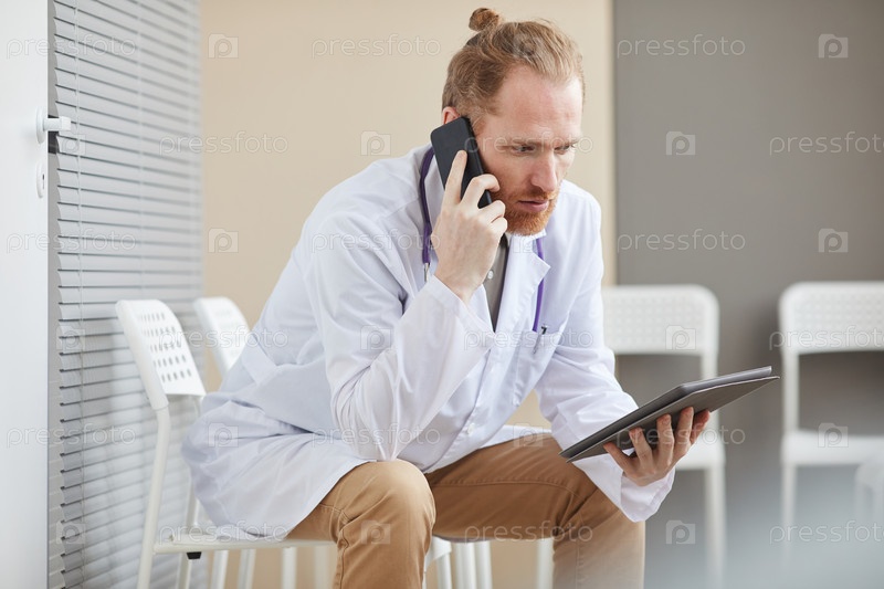 Доктор использует гаджеты на работе