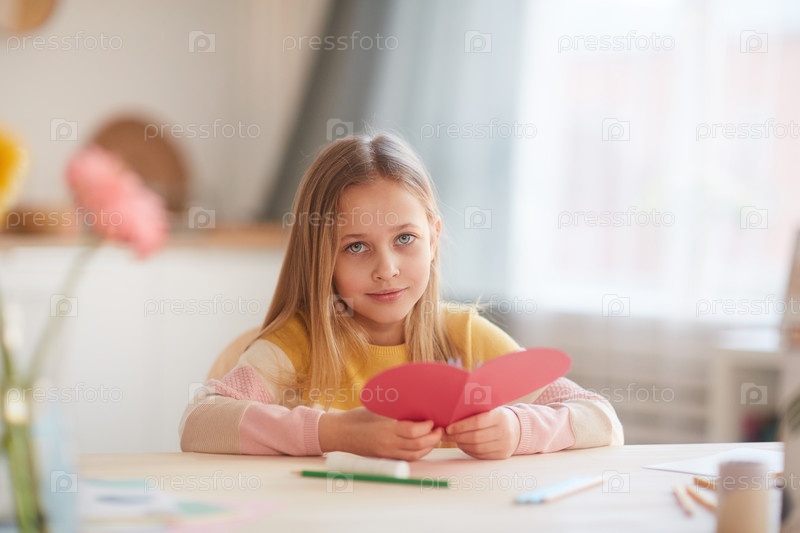 Милая девушка, держащая Валентинскую открытку