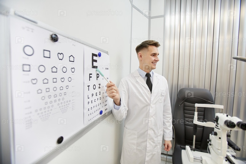 Офтальмолог, указывающий на график глаз
