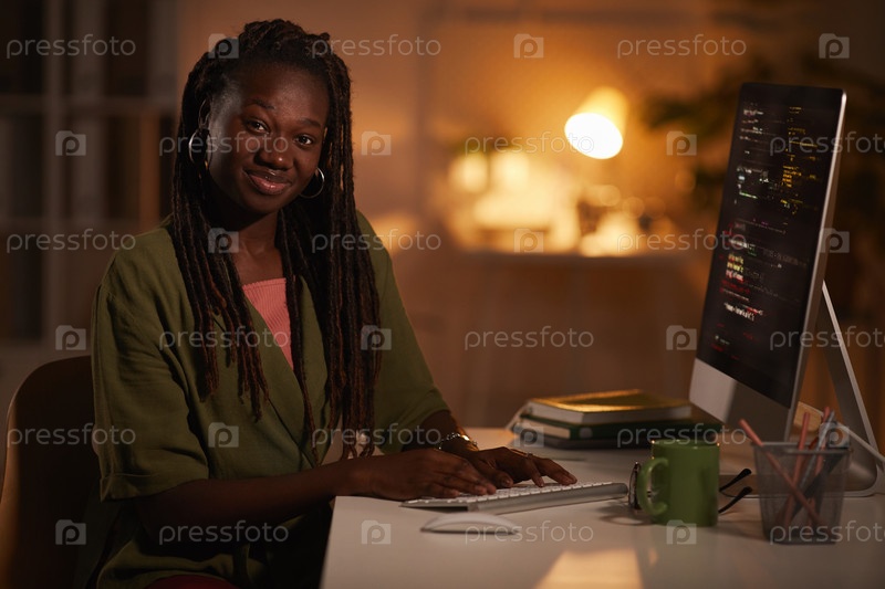 Молодая женщина ИТ-разработчик, пишущая код