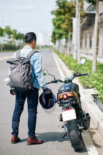 Мотоциклист надевает велосипедный шлем
