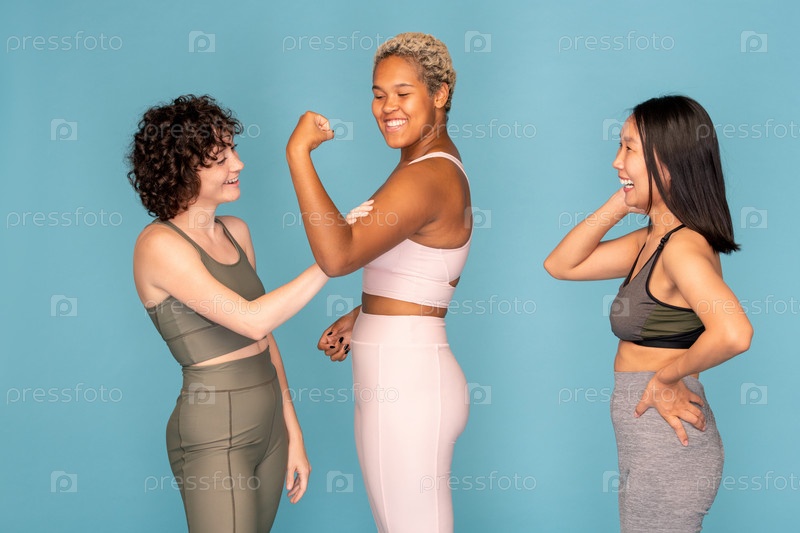 Африканская женщина демонстрирует силу, в то время как девушка касается ее мышц
