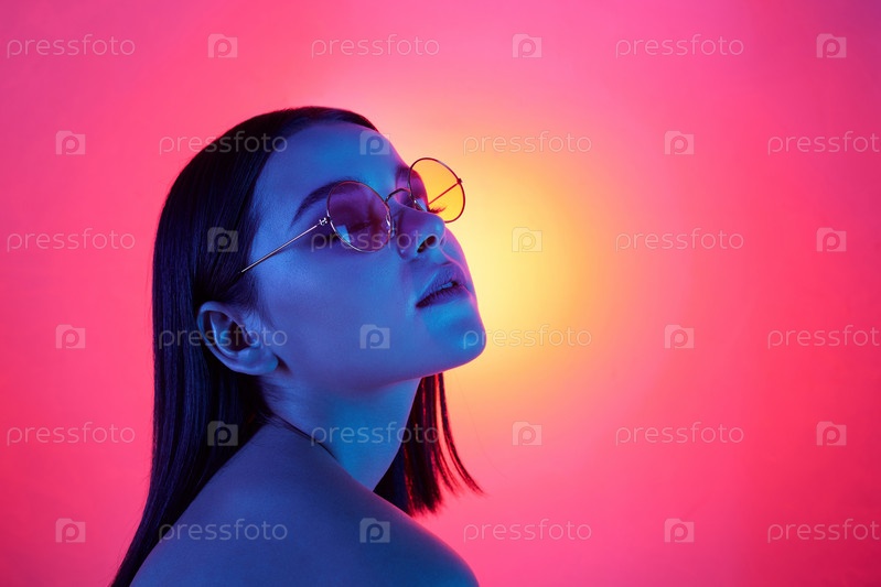 Привлекательная девушка в стильных очках выражает удовольствие во время отдыха