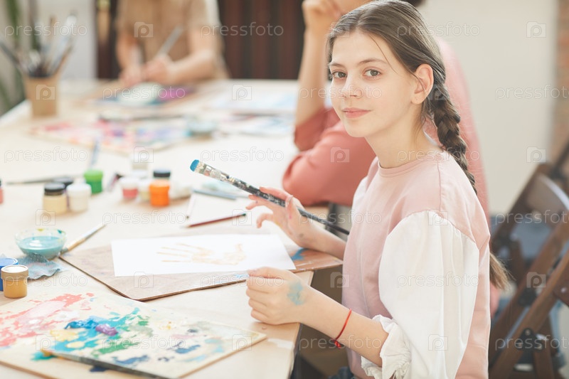 Девушка, сидящая в художественной студии