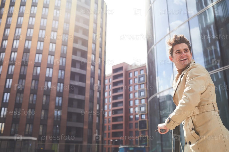 Улыбающийся молодой человек в городском городе