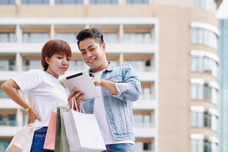 Пара, использующая приложение на планшете