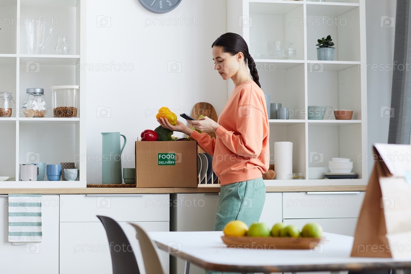 Женщина проверяет доставку еды