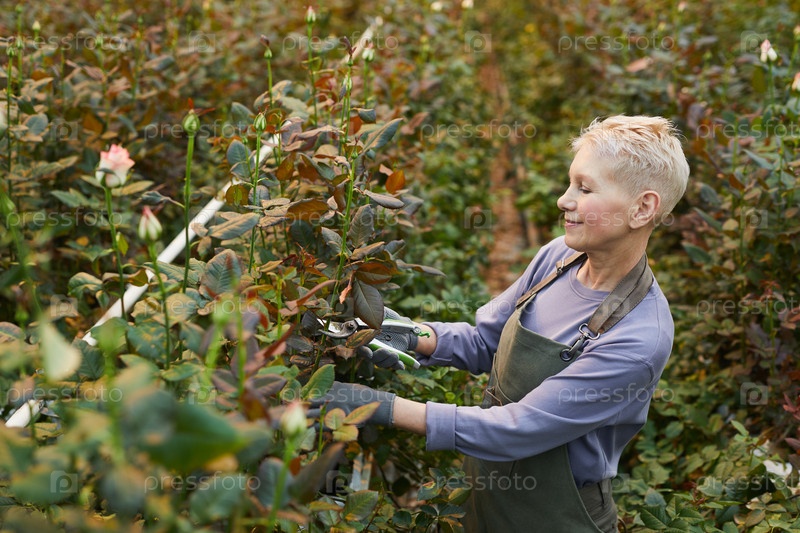 Садовник, вырезающий молодые розы