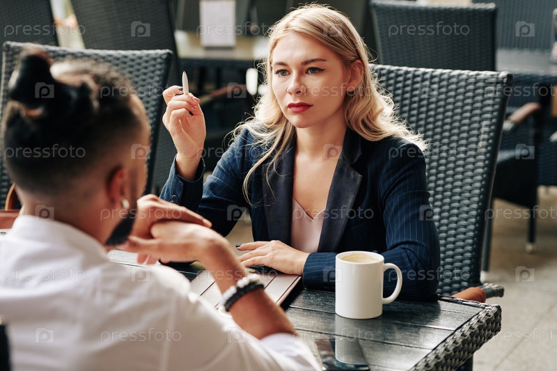Деловая леди слушает коллегу