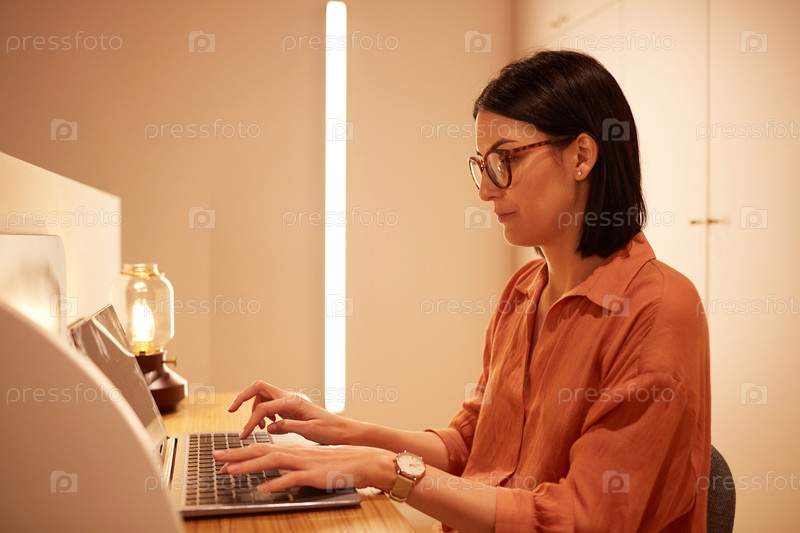Деловая женщина, работающая в футуристическом интерьере
