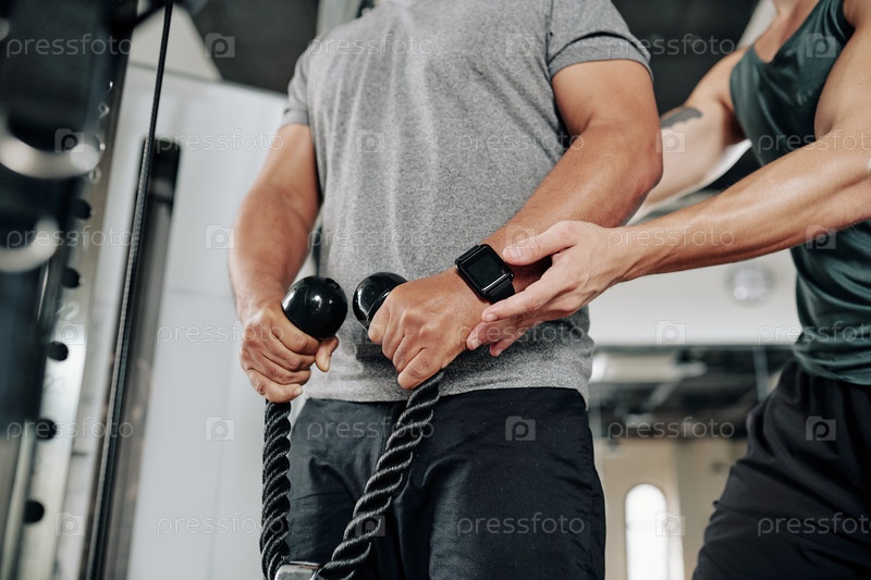 Тренер объясняет упражнения клиенту