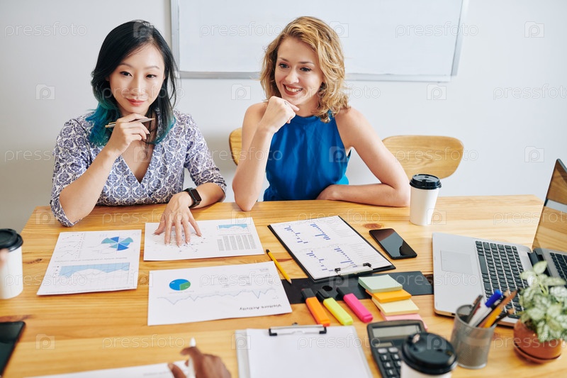 Бизнес-женщины анализируют отчеты