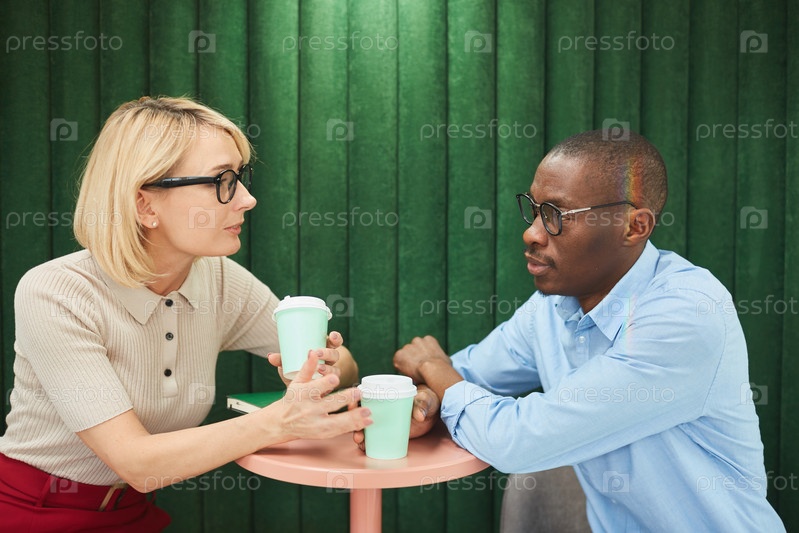 Деловая пара пьет кофе