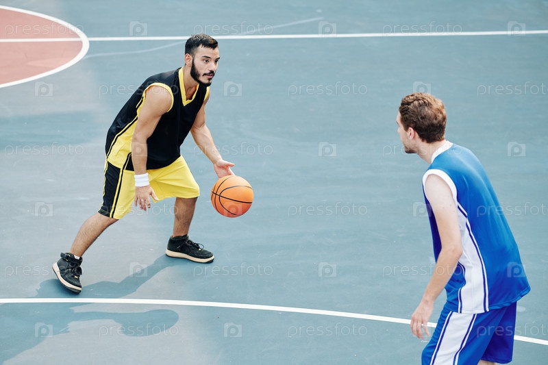 Мужчины играют в баскетбол на свежем воздухе