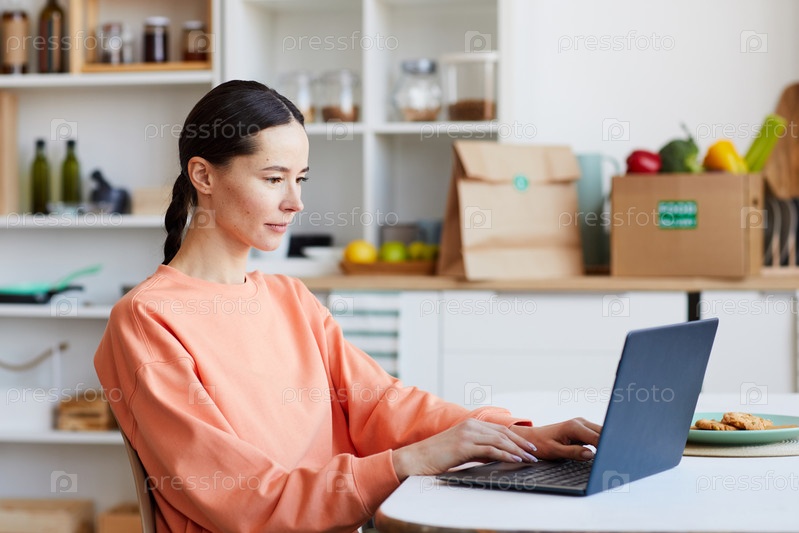 Женщина, использующая ноутбук дома