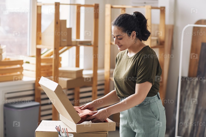 Женщина, упаковывающая посылки