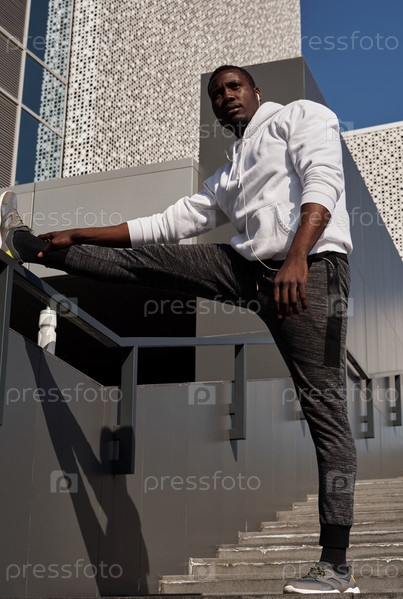 Мужчина занимается спортом в городе