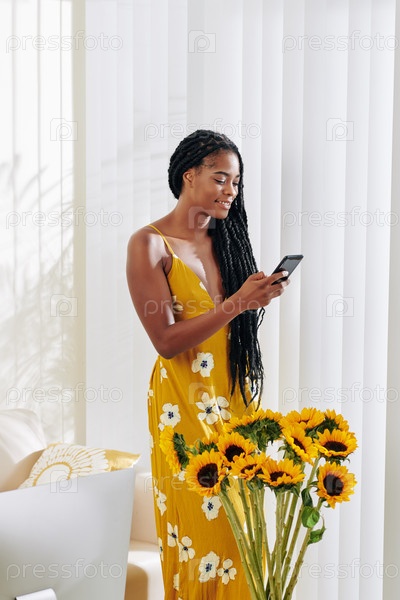 Женщина читает текстовое сообщение