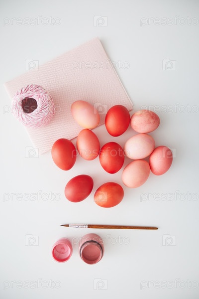 Ручно окрашенные пасхальные яйца на белом