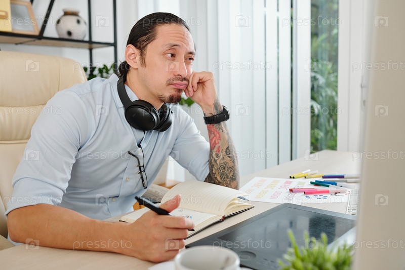 Дизайнер читает краткое содержание от клиента