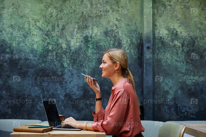 Деловая женщина, работающая в кофейне