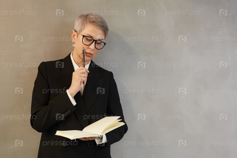 Успешная старшая бизнесвумен, пишущая в журнале