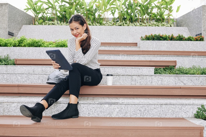 Бизнес-леди отдыхает на скамейке
