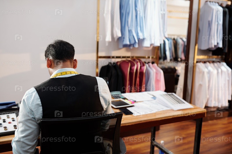 портной, работающий за столом