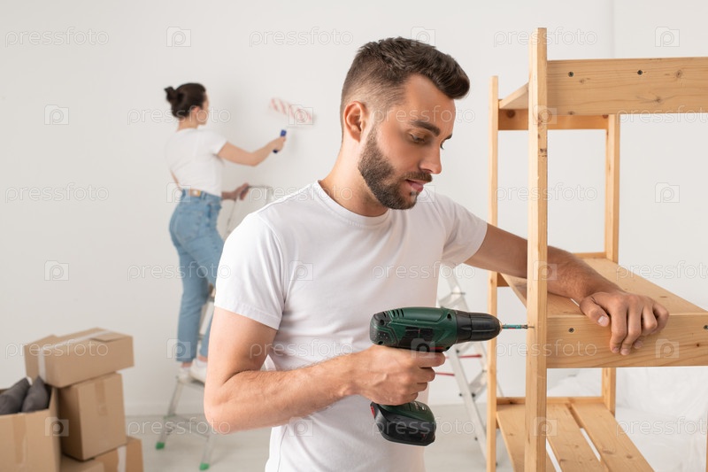 Сосредоточен на сборке мебели